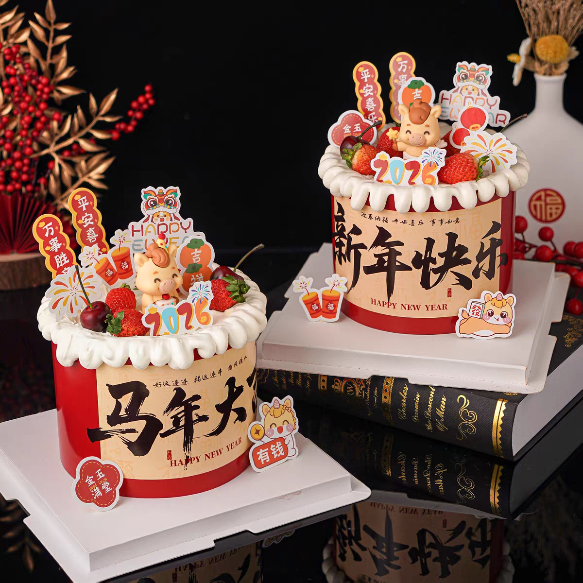 2026新年快乐马年大吉围边可爱生肖马宝宝跨年装扮摆件蛋糕装饰 - 果果酱烘焙坊