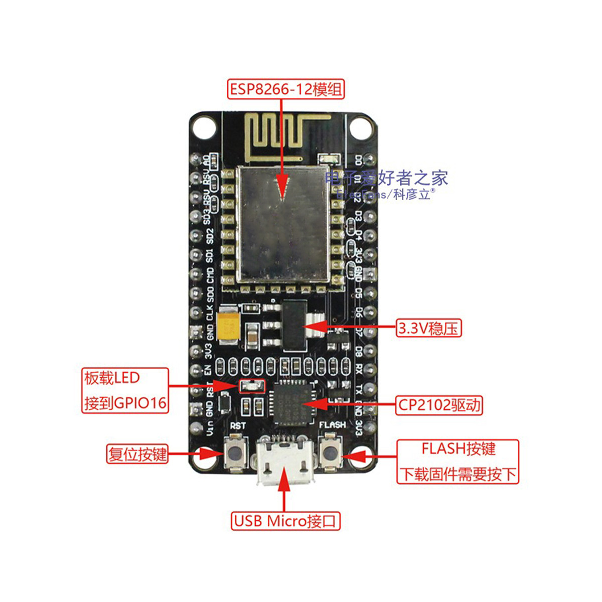 ESP8266-V3模块 WIFI网络控制器 Nodemcu Arduino物联网开发板 - 珺乐光楹鲤专卖店