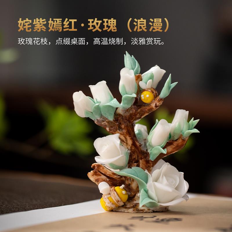 姹紫嫣红手工陶瓷精美瓷花小摆件客厅鱼缸内饰造景沉底沉水装饰品 - 酷特百货官营店