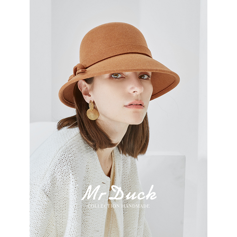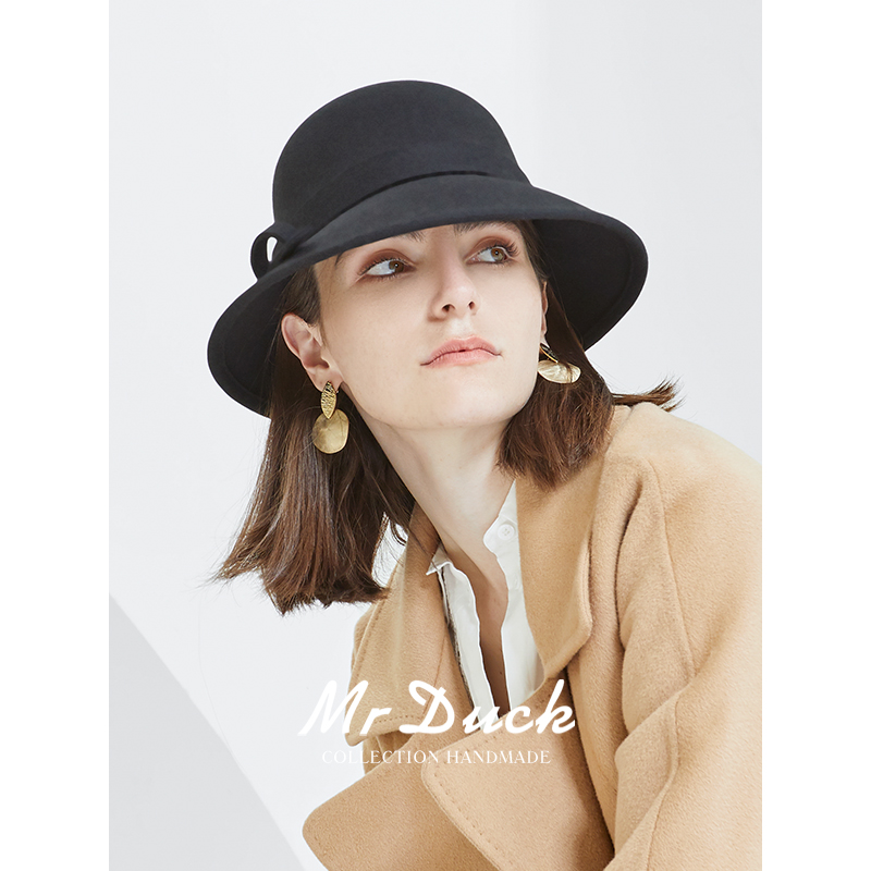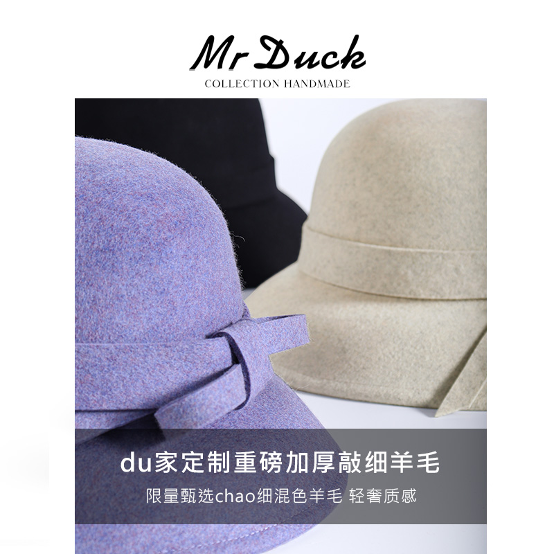 mrduck原创设计赫本风澳洲羊毛渔夫帽女优雅礼帽秋季新款高档盆帽 - mrduck旗舰店