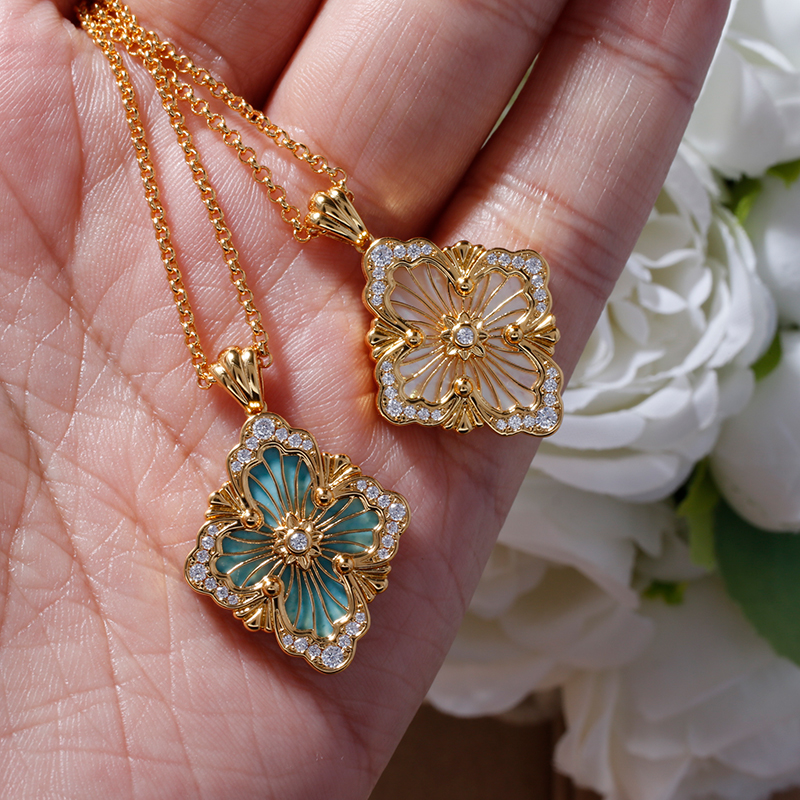 识货的来!歌剧院opera项链女贝母珐琅天河石镀18K黄金吊坠锁骨链 - girlgang设计师珠宝2号