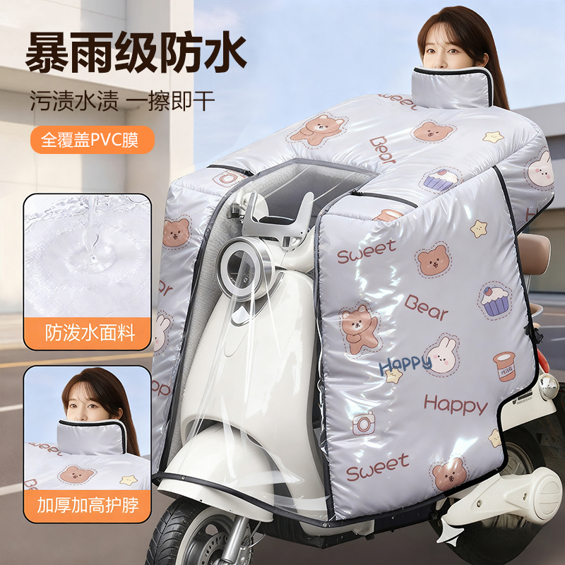 【防雨膜】电动车挡风被冬季加绒加厚电瓶摩托车保暖防水四季通用 - 韩朵雅旗舰店
