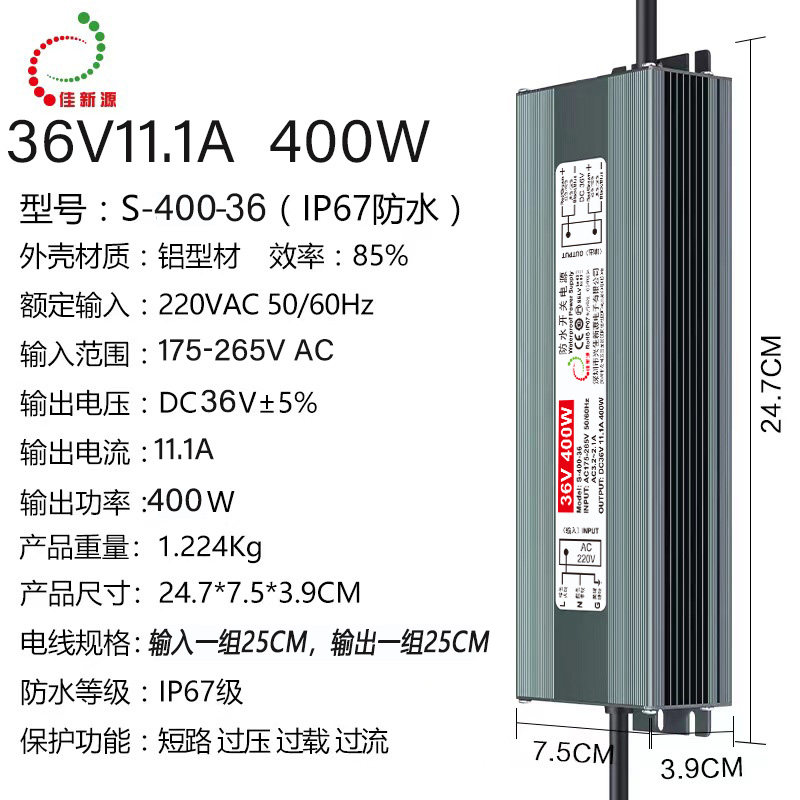 220V转36V48V350W400W防水电源 变压器 IP67雾化器LED灯带 半灌胶 - LED开关电源厂家佳新源