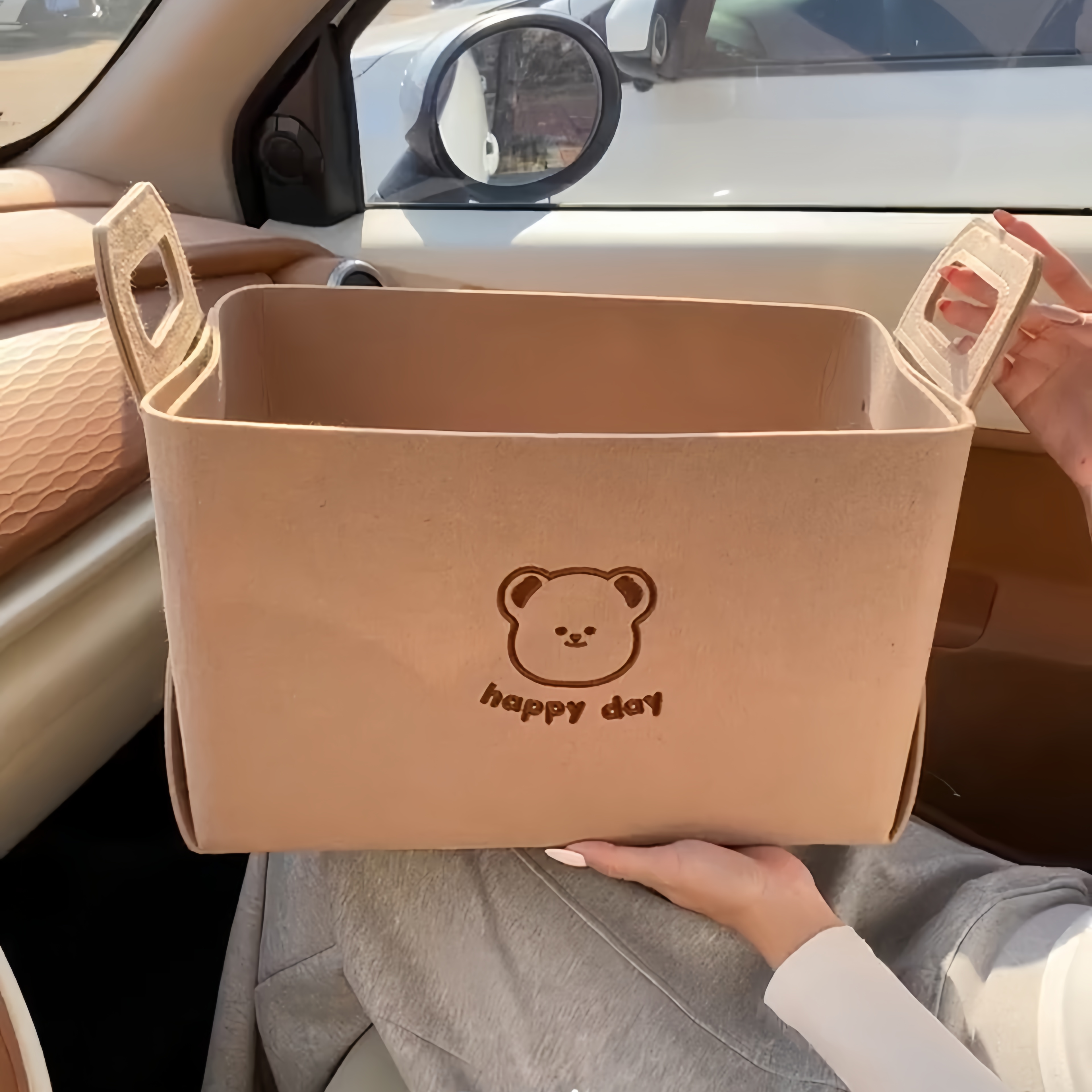 车载毛毡折叠收纳盒神器客厅桌面杂物零食筐整理篓家用车用带提手 - 初夏时光杂货铺