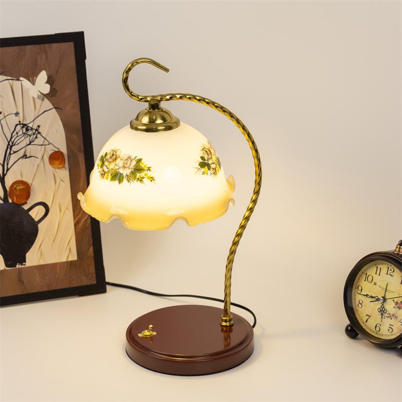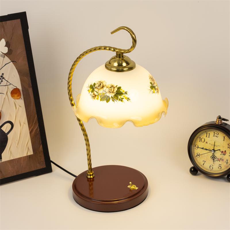 法式中古美式中式复古卧室氛围灯具床头结婚长明印花台灯书房书桌 - 辽览百货店2