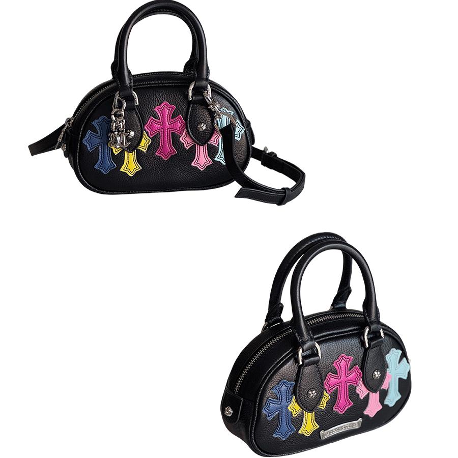 富察老王同款彩色十字架保龄球包 小众头层牛皮手提斜挎贝壳包女