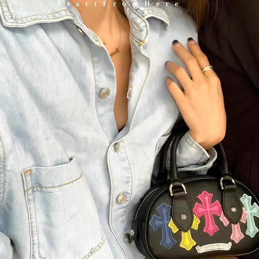 富察老王同款彩色十字架保龄球包 小众头层牛皮手提斜挎贝壳包女 - StartFromHere