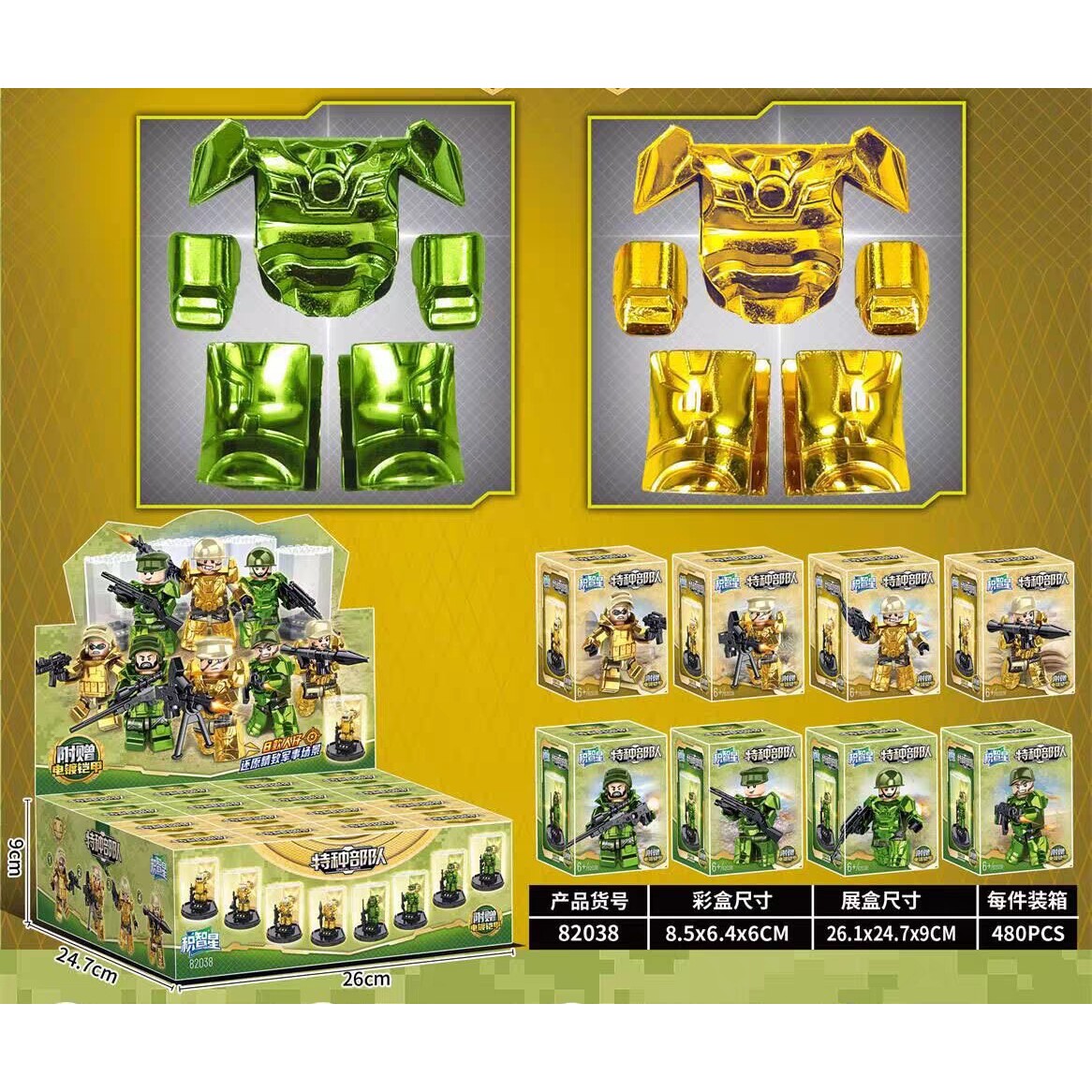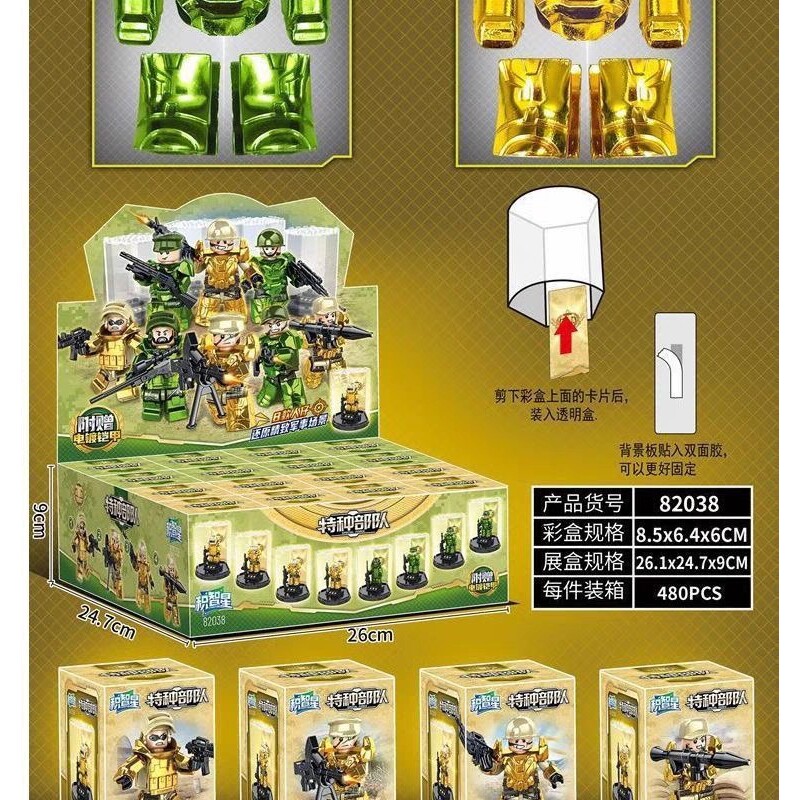积智星82038军事特种兵人仔武器装甲带展示盒装甲DIY拼插儿童积木