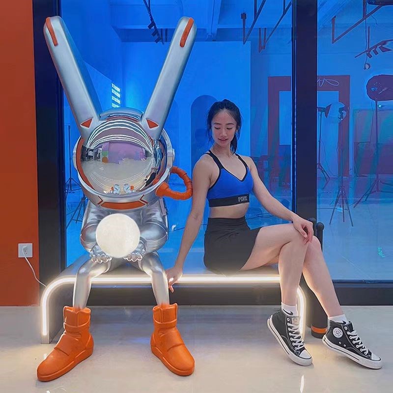 您的位置:他他商城  >   >  商场网红台球科技robbi太v空兔子玻璃钢雕塑月光兔电竞酒吧ktv摆