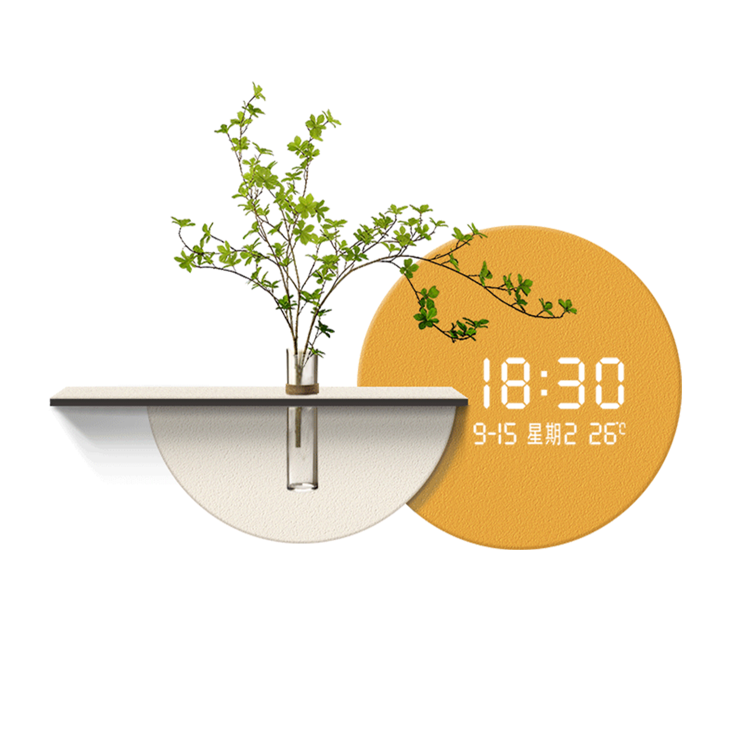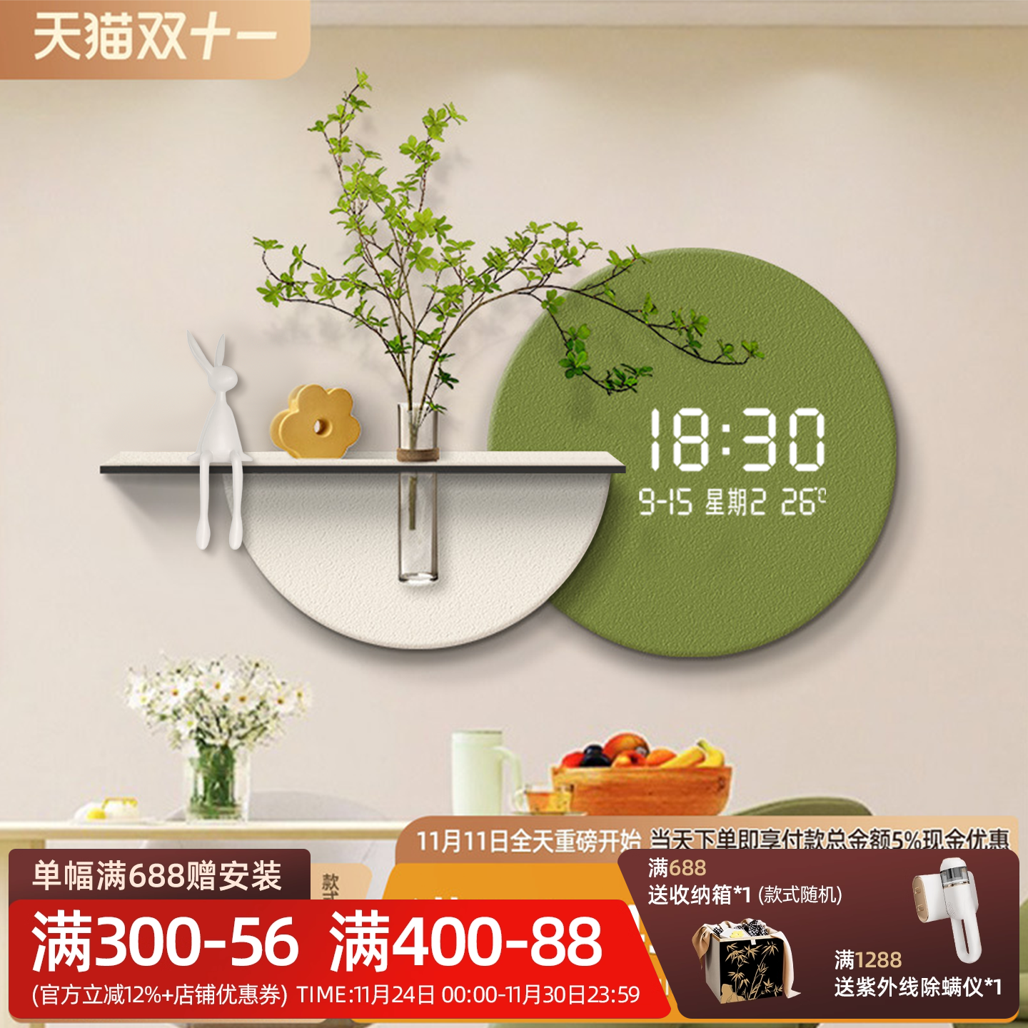 奶油风餐厅装饰画新款创意挂钟水培绿植挂画客厅沙发背景墙壁时钟 - 熙伍旗舰店