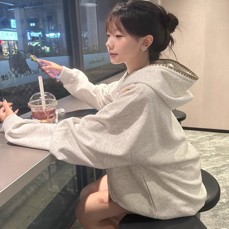 您的位置:他他商城  >   >  2025小众字母印花连帽卫衣女秋冬加绒oversize设计感慵懒外套上衣