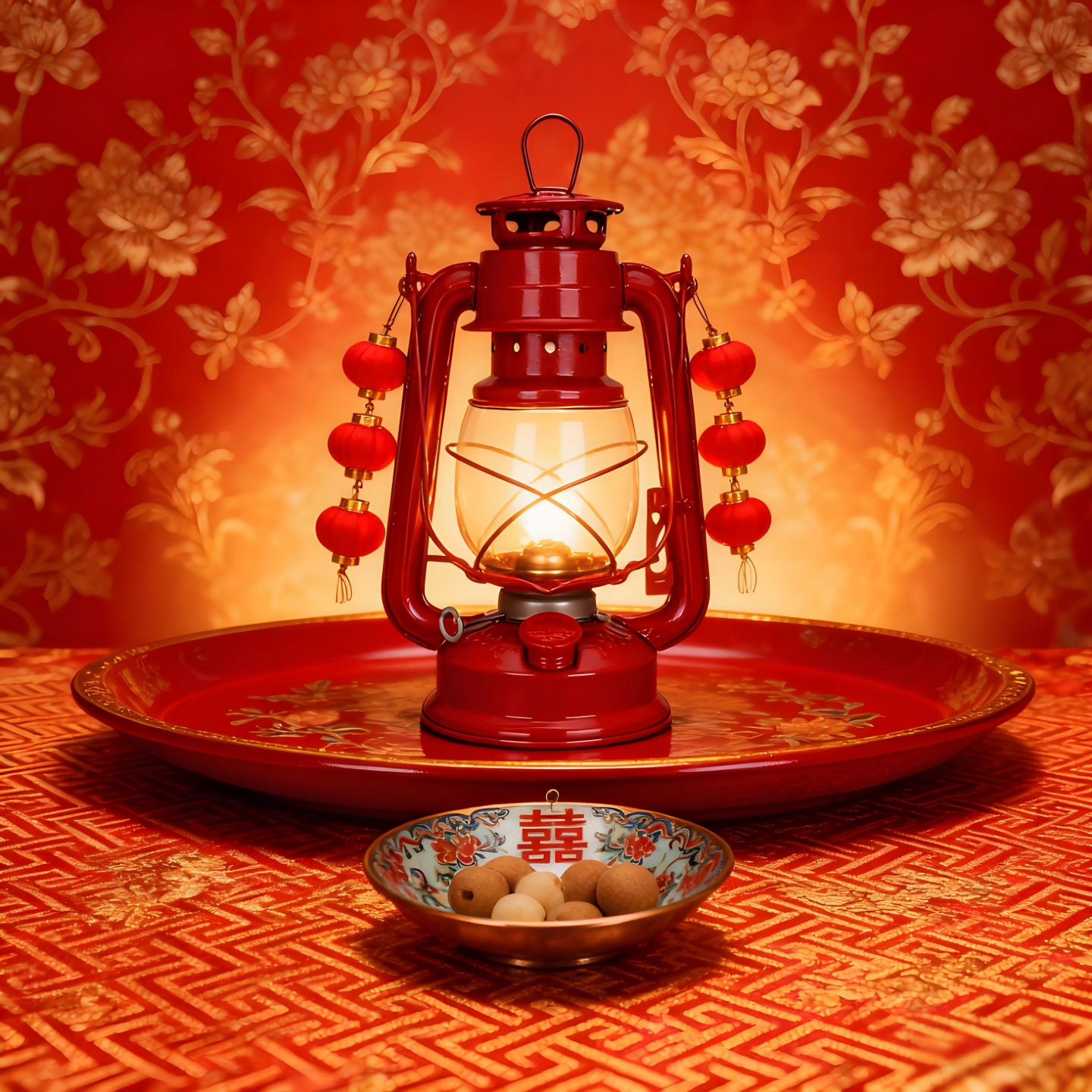 红色结婚手提煤油马灯送灯芯中式婚礼接亲道具复古煤油灯摆件装饰 - 王家喜庆用品