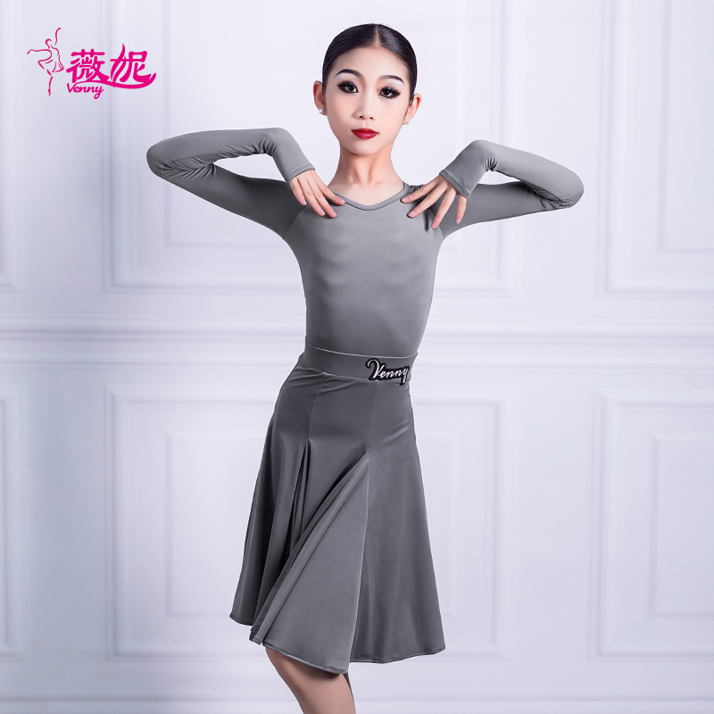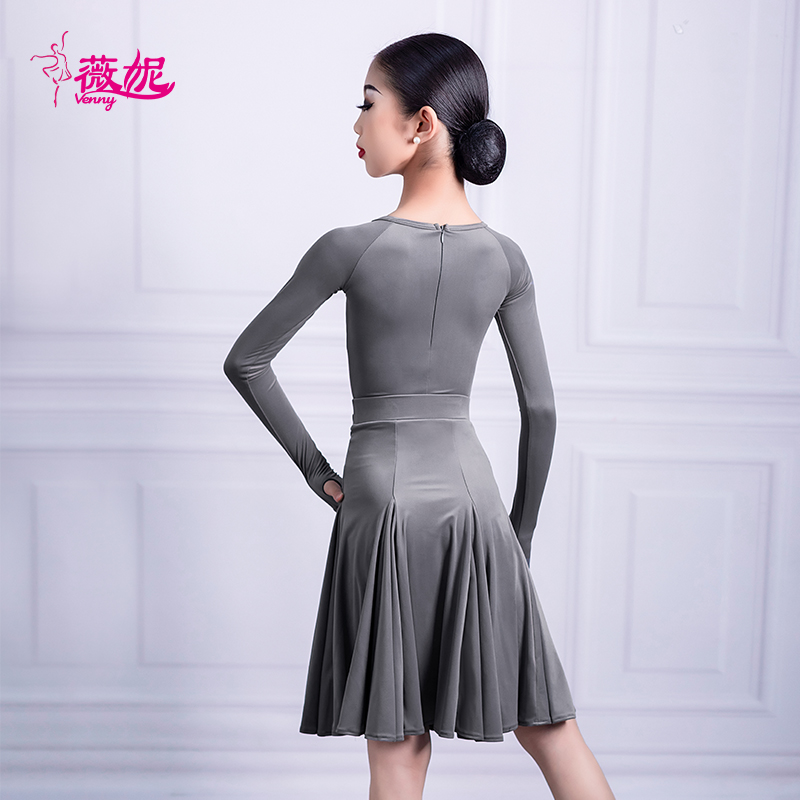 薇妮少儿拉丁舞规定服体协比赛专用无鱼骨比赛长袖套拇指量身定制