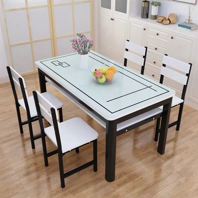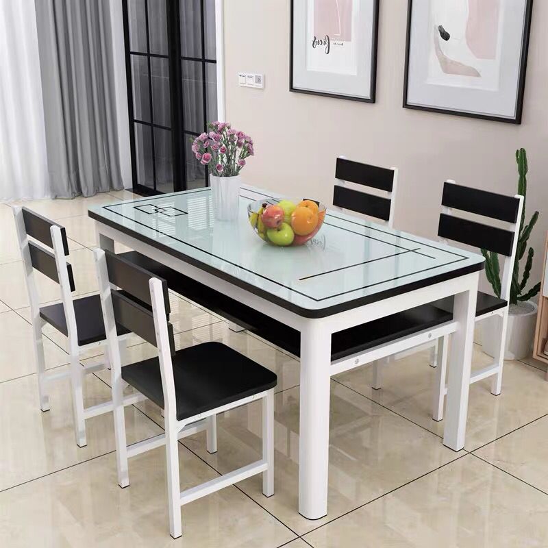 餐桌家用长方形小户型双层多功能钢化玻璃简易餐桌餐厅饭桌椅组合 - 笺字褪商城