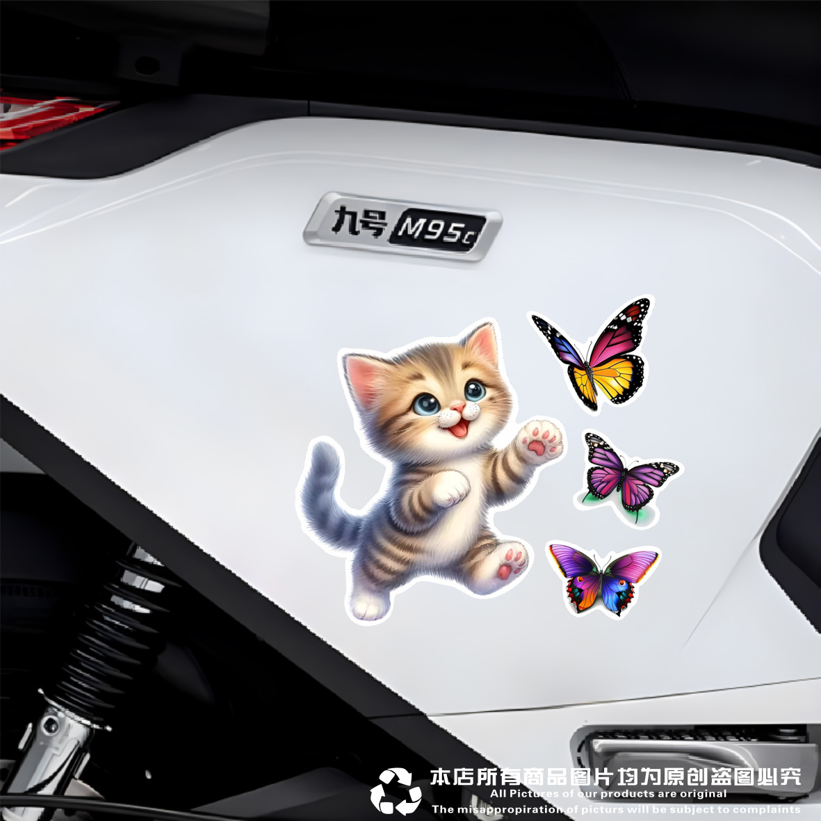 3D立体可爱小猫抓蝴蝶汽车贴纸电车摩车卡通防水车窗玻璃贴行李箱 - 镭射大王车贴 行业前三