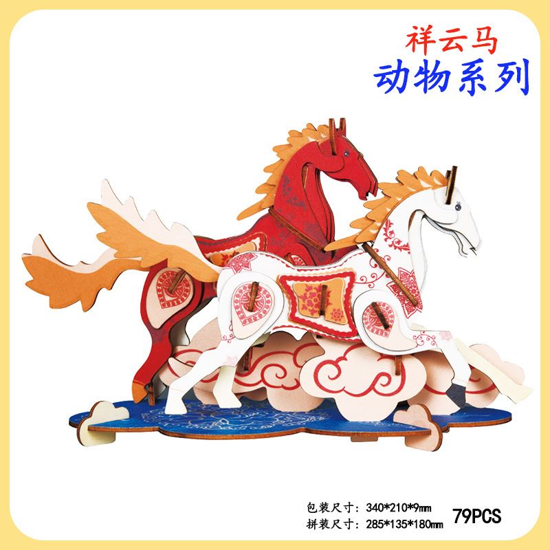 儿童手工拼装木质3D立体拼图模型木制仿真祥云马摆件DIY拼图玩具
