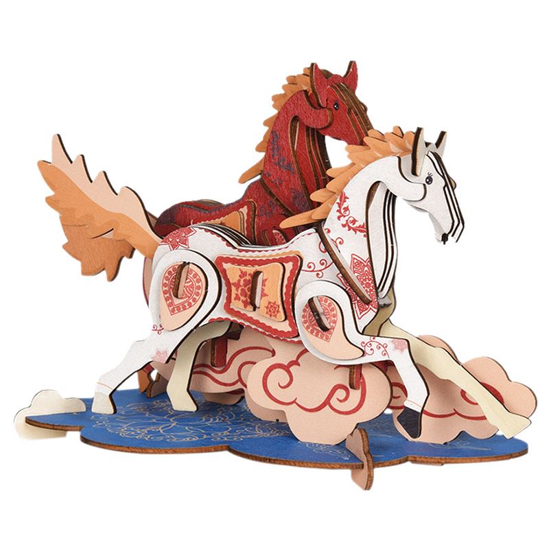 儿童手工拼装木质3D立体拼图模型木制仿真祥云马摆件DIY拼图玩具 - 集博旗舰店