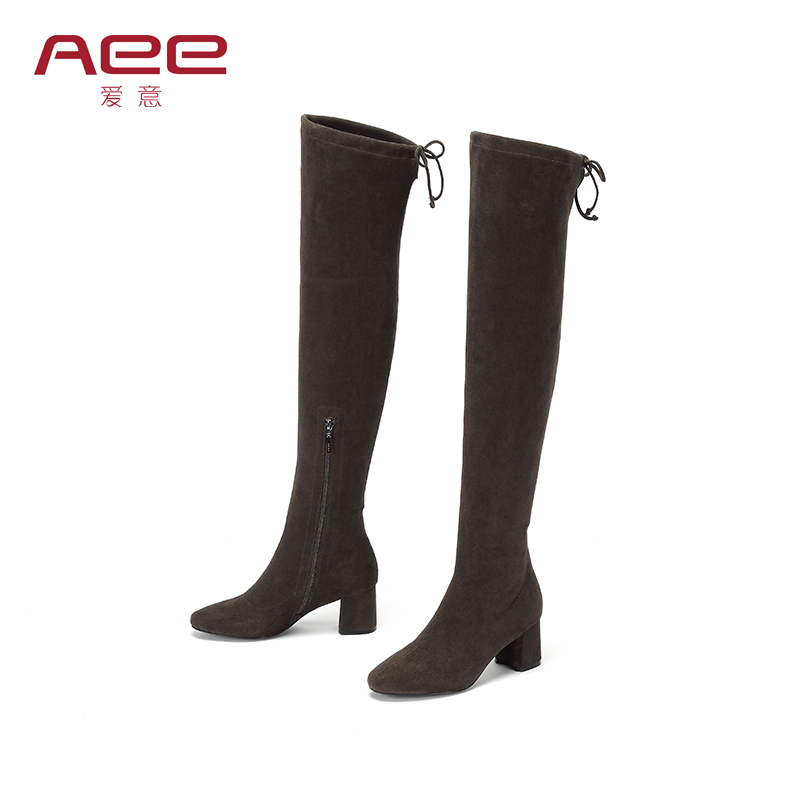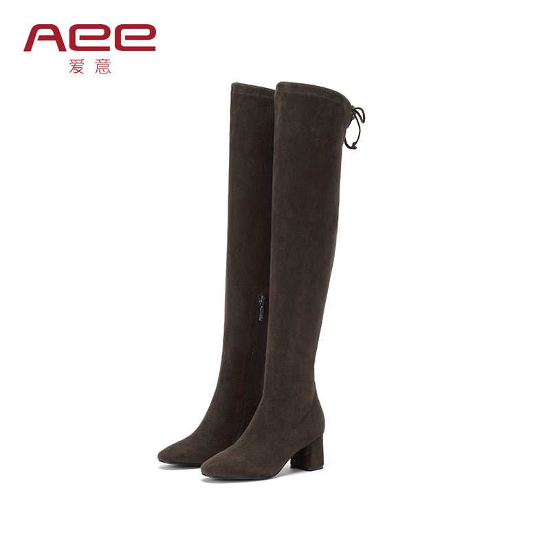 Aee/爱意秋冬款粗跟尖头弹力长靴高筒袜靴显瘦方跟过膝靴女 - 爱意官方旗舰店