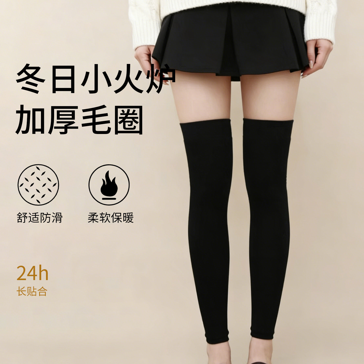 女士小腿袜护膝腿套秋冬加厚毛圈保暖jk微压防滑显瘦膝袜长筒过子