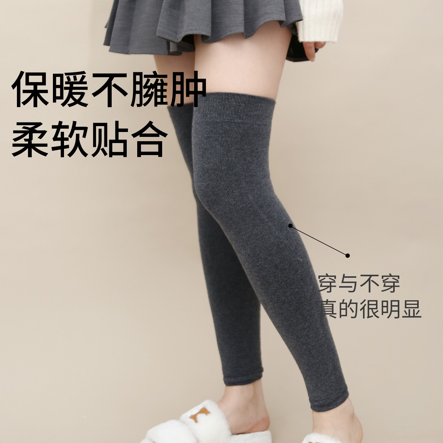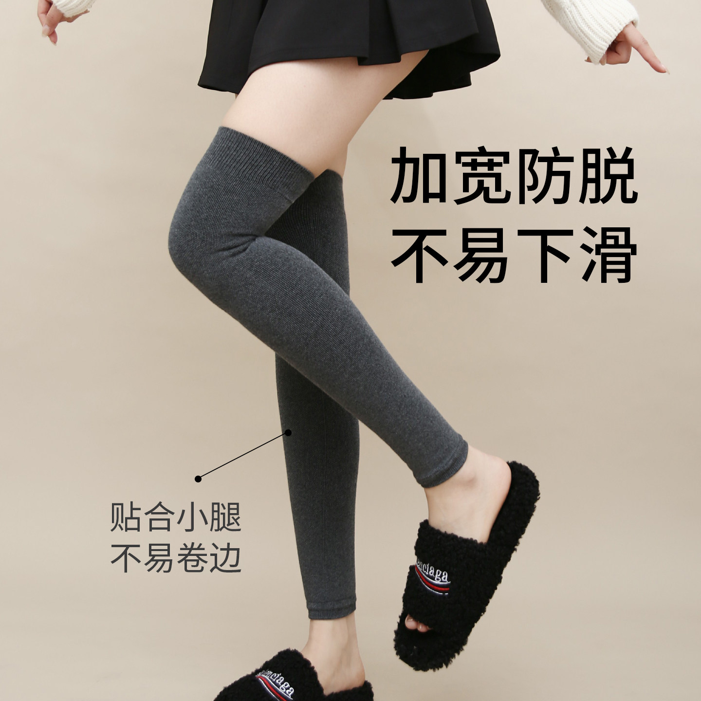 女士小腿袜护膝腿套秋冬加厚毛圈保暖jk微压防滑显瘦膝袜长筒过子 - 十三日季旗舰店