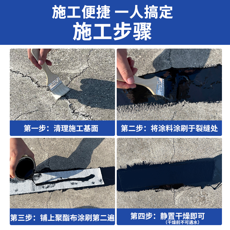 速发屋顶防水补裂材料房顶漏缝堵水胶聚氨酯平房漏漏王外墙涂料胶