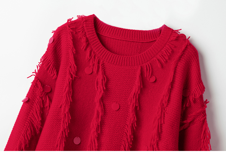 您的位置:他他商城  >  女装  >  上身无法形容的漂亮!加厚手工亮片羊绒衫女新年红圆领宽松毛衣