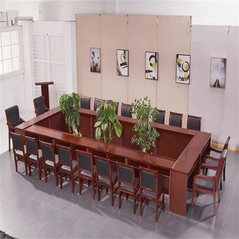 会议桌长桌大小型报告厅实木领导桌培训I桌礼堂条形桌红色会议桌 - 凤星园商城