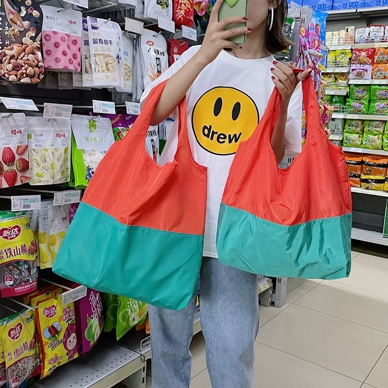 双色拼接可折叠购物袋 家用手提袋现货 加印LOGO买菜包收纳袋 - 集博旗舰店