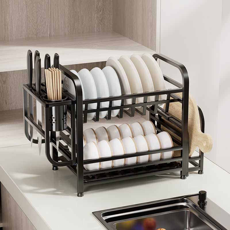 碗架不锈钢厨房台面盘子沥水置物架放碗碟刀2023新款碗柜家用双层 - 艾粤佳厨具厂家直销