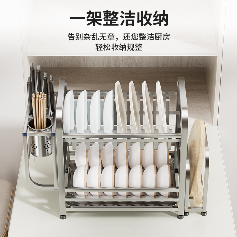 您的位置:他他商城  >  电器  >  碗架不锈钢厨房台面盘子沥水置物架放碗碟刀2023新款碗柜家用双层