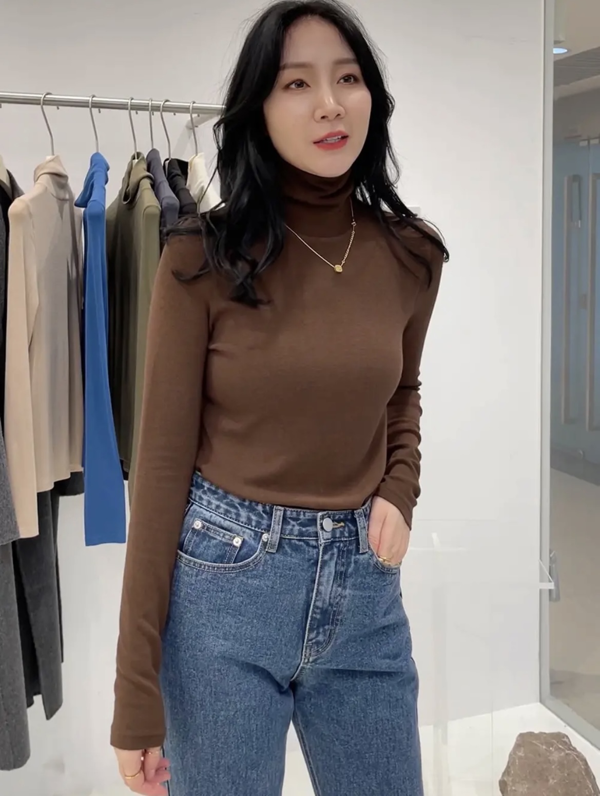 Widelia十三行老板娘2023秋冬韩版修身显瘦纯色加绒高领打底9183 - 广州十三行widelia老板娘