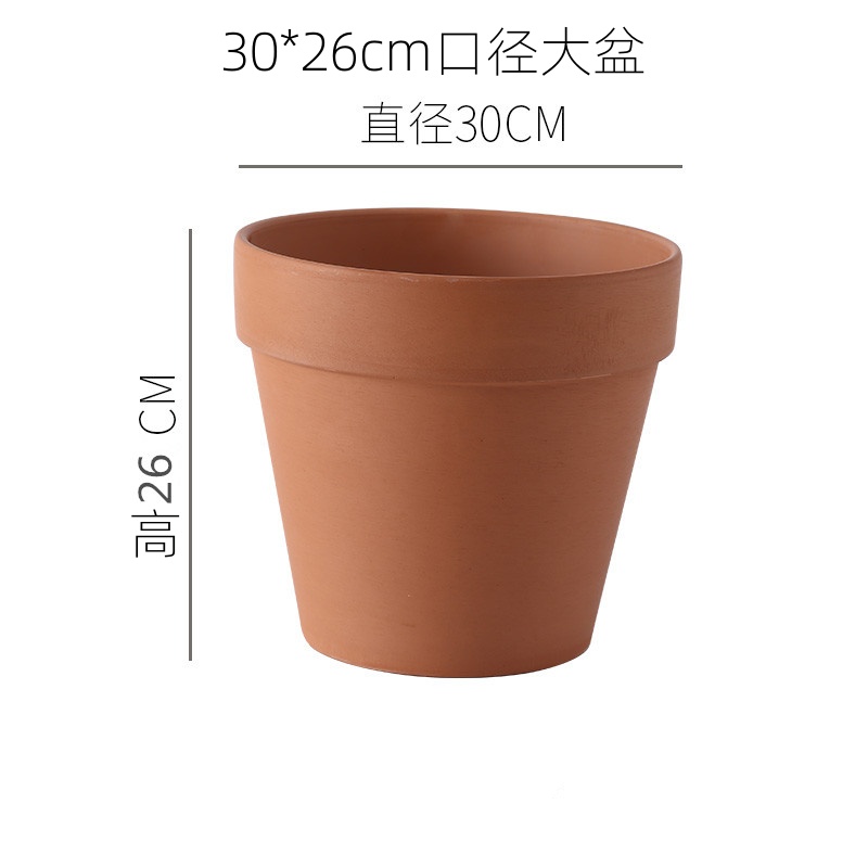 红陶土大口径田园客厅落地带底孔圆形花盆透气强吸水性强特价包邮 - 光星雅器