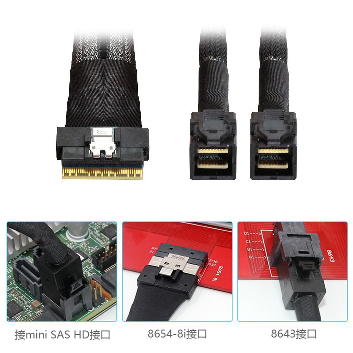 SFF-8654 8i 74P对双SFF-8643连接线 内置Slimline SAS4.0 - nvme旗舰店