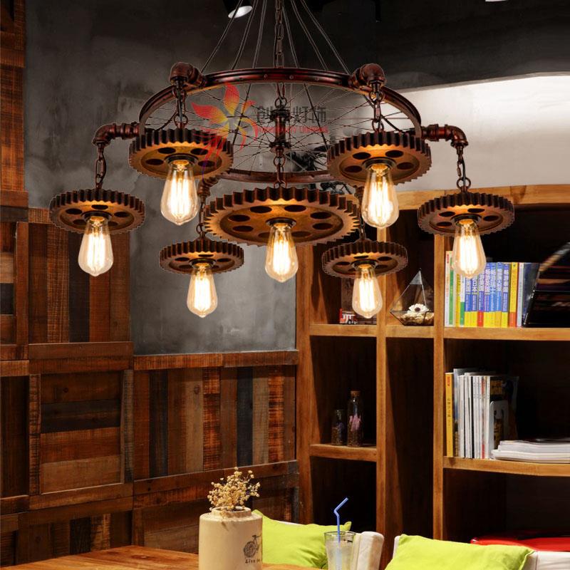 loft吊灯创意服装店店铺咖啡店美发理髲店网咖覆古木头工业风吊灯