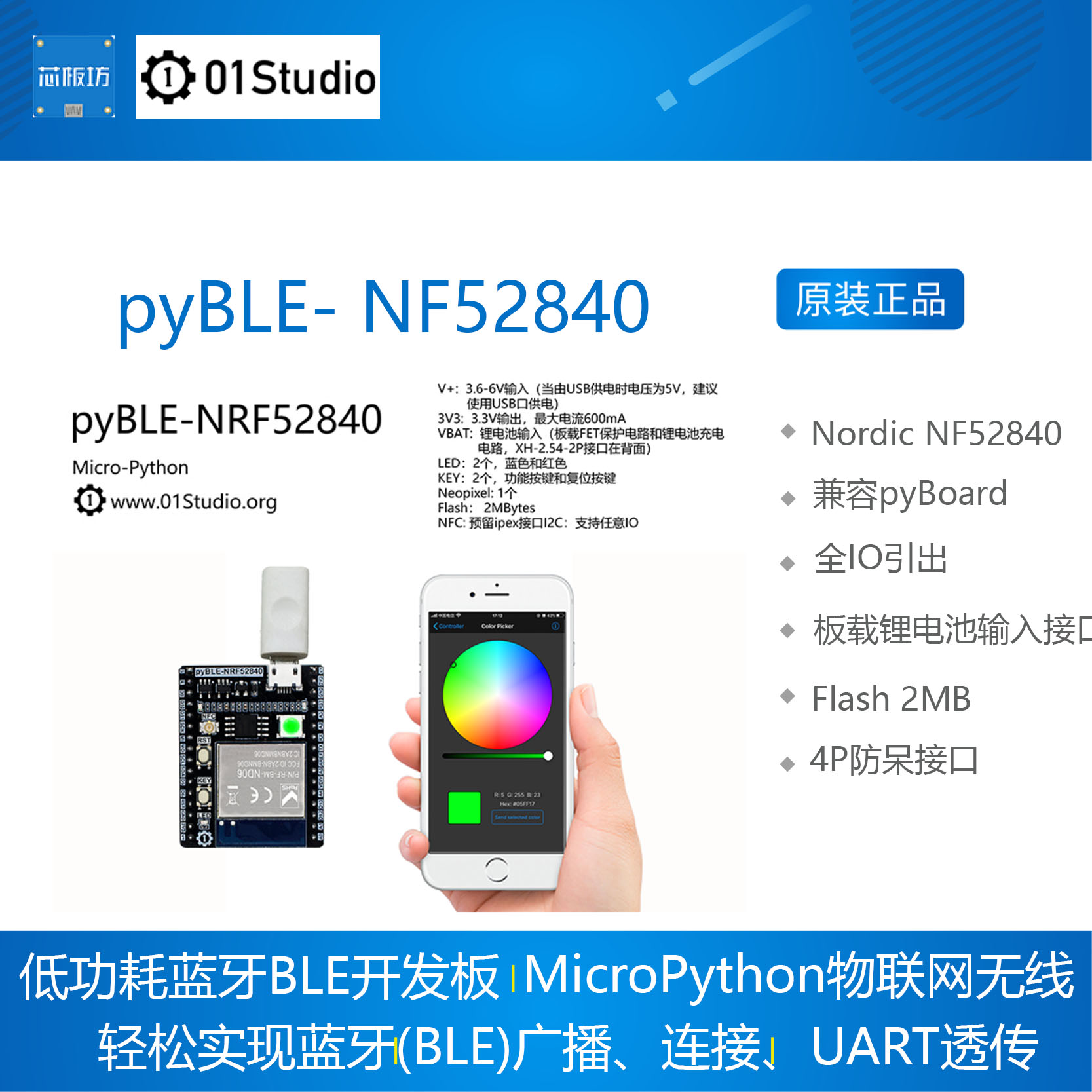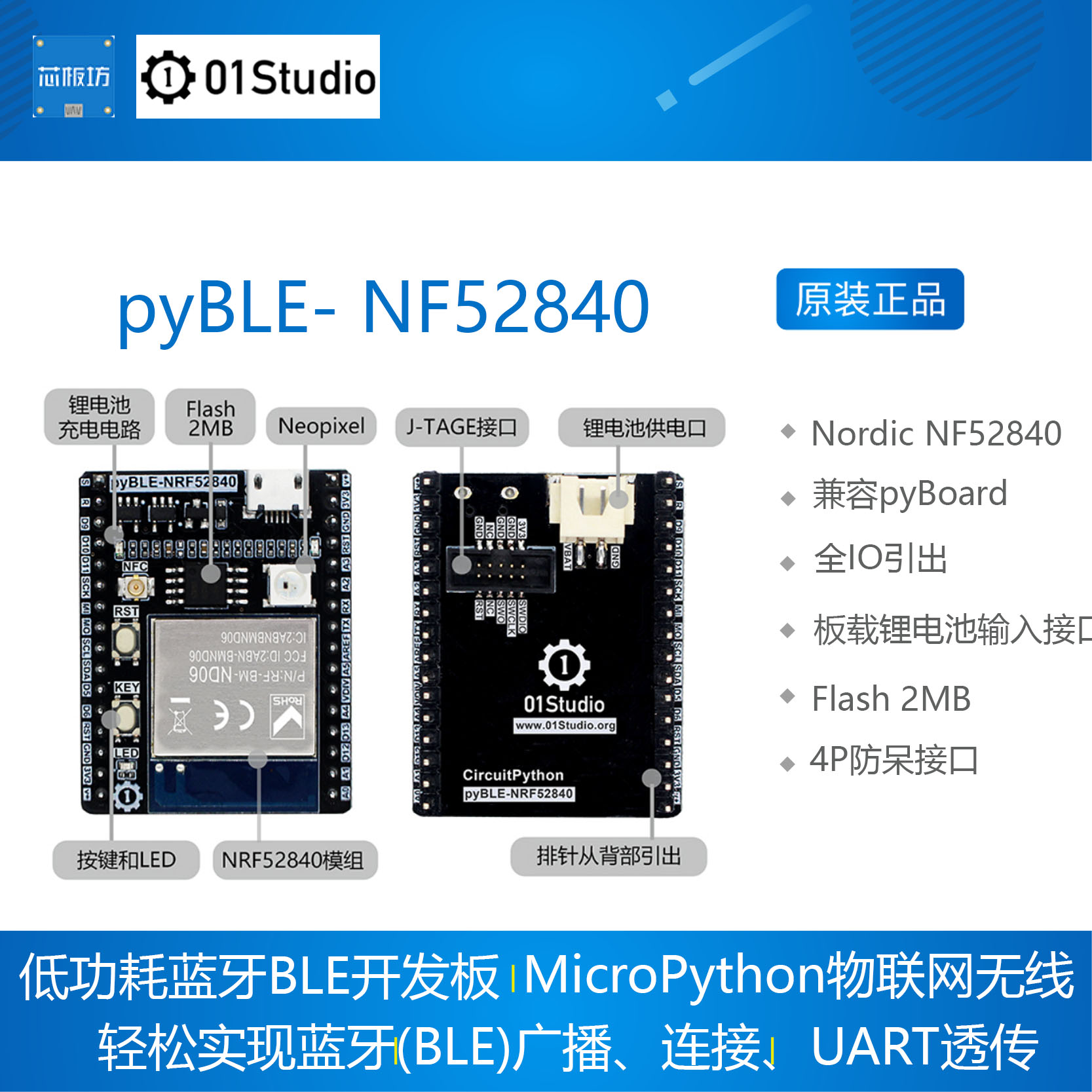 pyBLE- NF52840 低功耗蓝牙BLE开发板 MicroPython无线01studio - 芯板坊