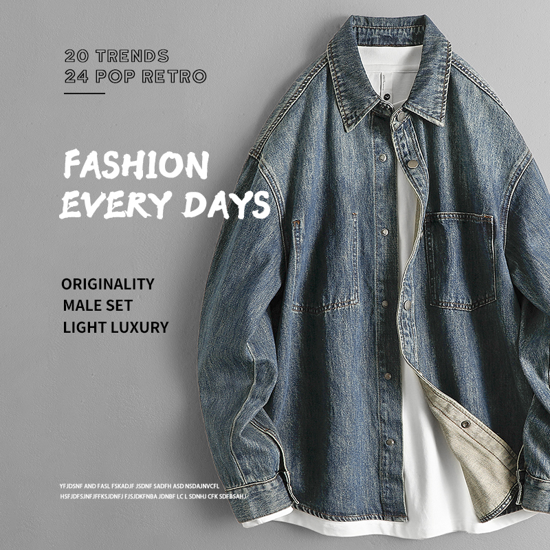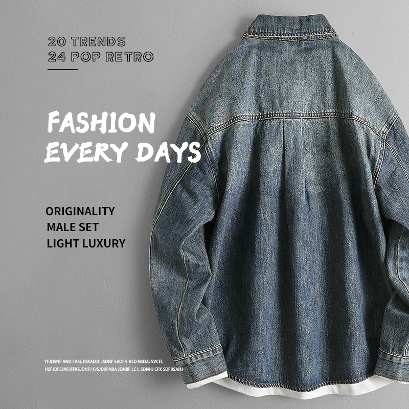 您的位置:他他商城  >   >  春秋季2025新款重水洗蓝长袖衬衣美式休闲复古暗扣牛仔衬衫外套男