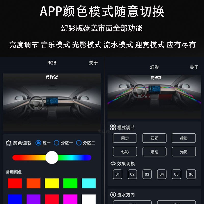 汽车车载LED氛围灯改装流光幻彩无线隐形黑免接线亚克力气氛 - 贸江启设计馆01