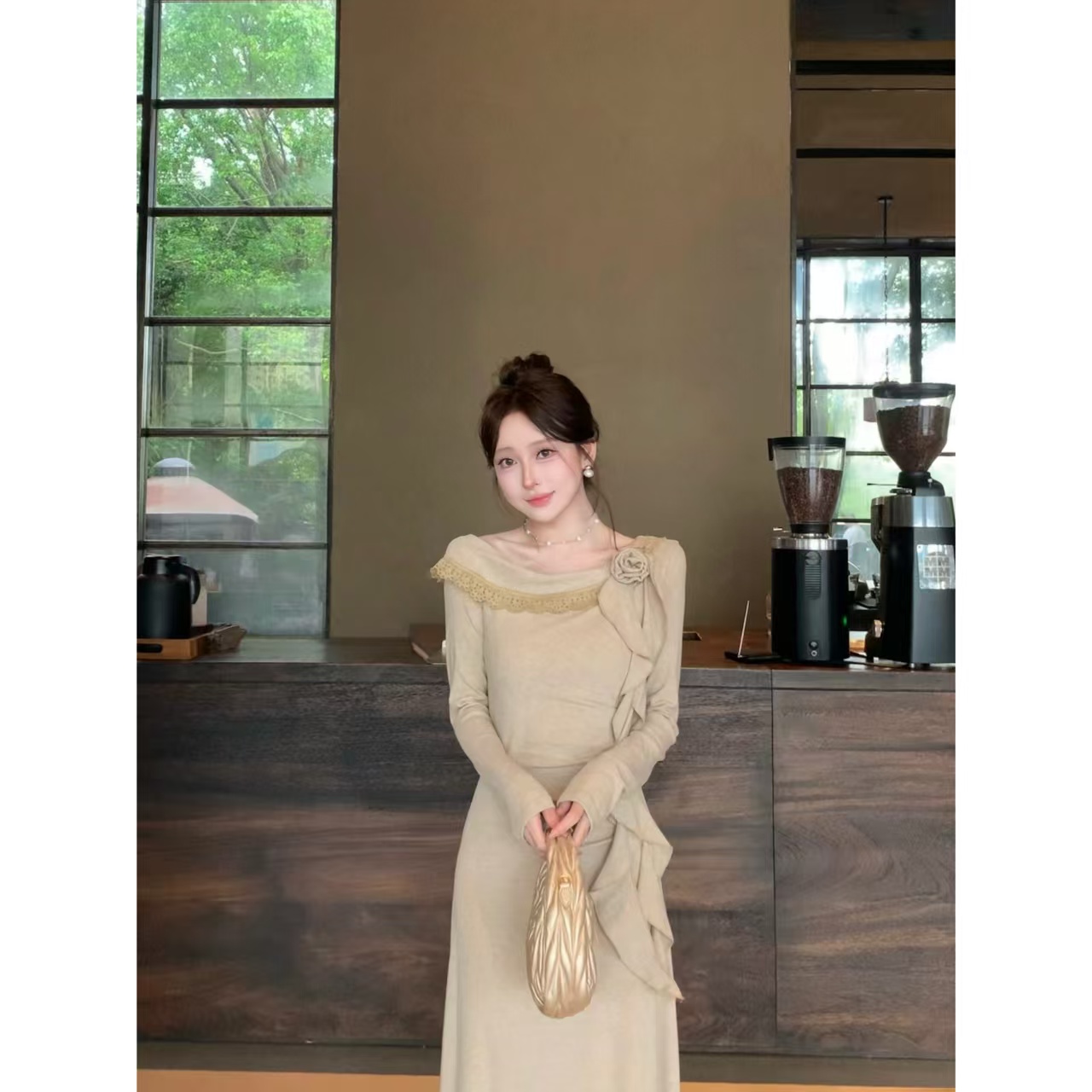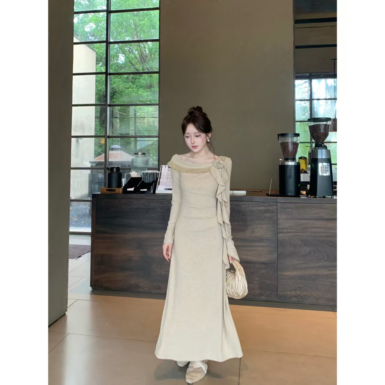 您的位置:他他商城  >   >  新品实价木耳花裙小个子气质斜肩木耳飘带显瘦收腰连衣裙女