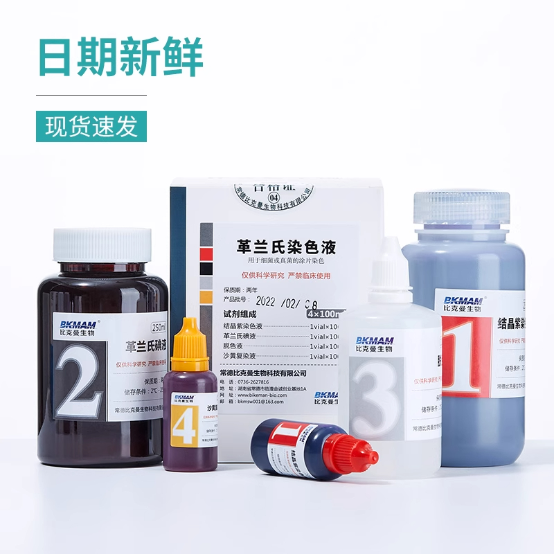 比克曼生物革兰氏染色液脱色液碘液复染液贝索显微镜细菌染色剂 - BKMAMCELL试剂旗舰店