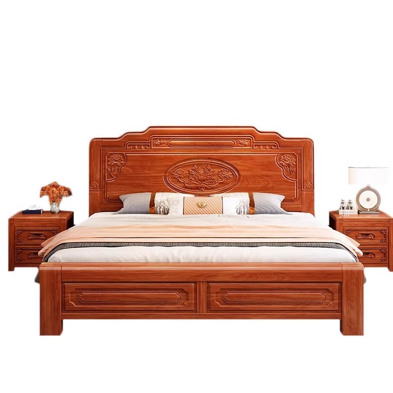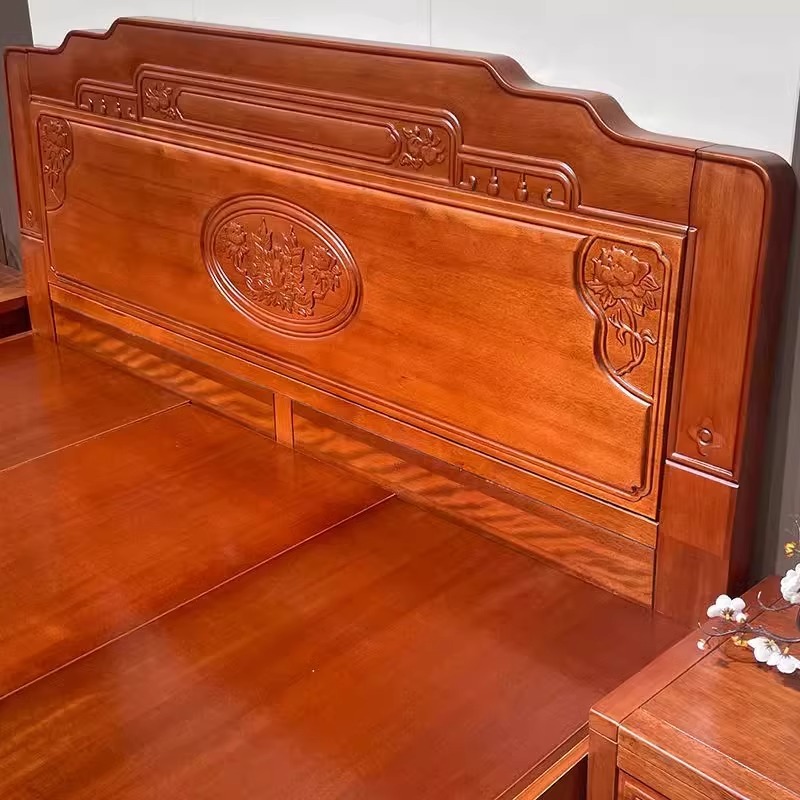 实木床金花梨木中式双人床1.8m主卧单人婚床明清古典仿古雕花榫卯 - 盛邦实木家具馆