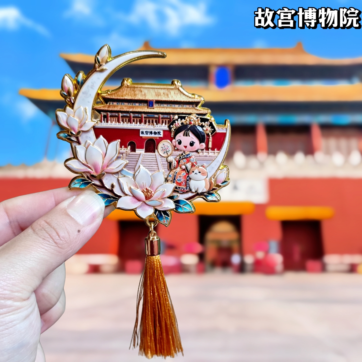 北京故宫博物院古风冰箱贴月神荷花刺绣流苏装饰贴文创纪念品礼物