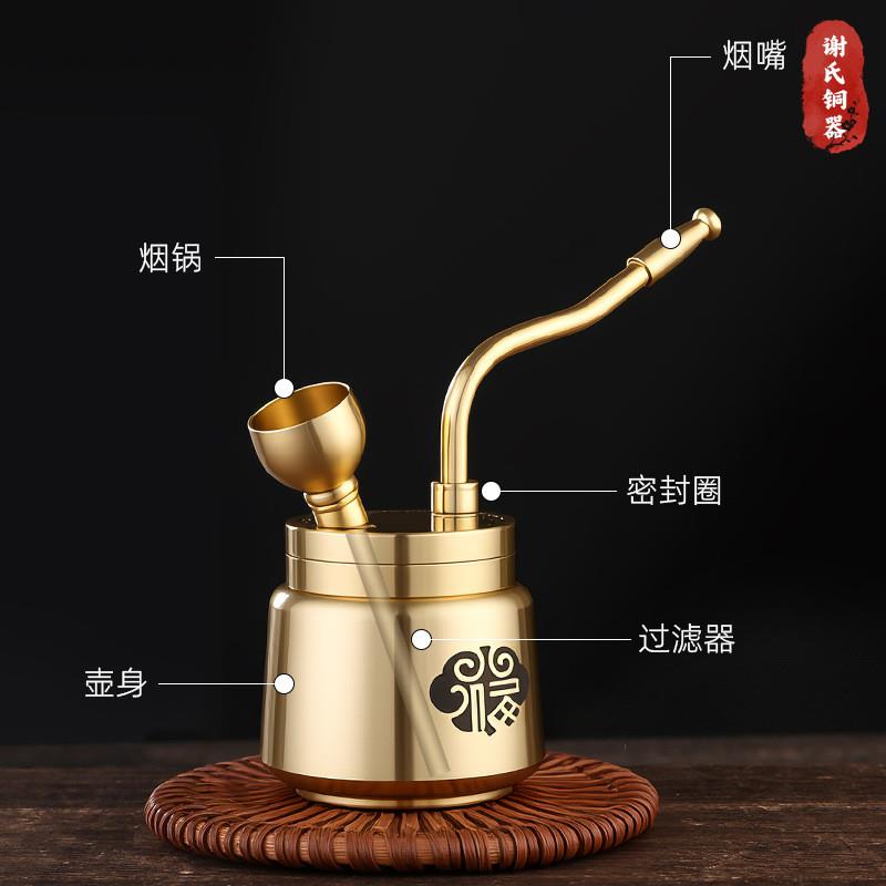 福字水烟壶谢氏铜器官方正品可清洗可拆卸黄铜过滤烟斗粗中细用 - 漫途露营装备