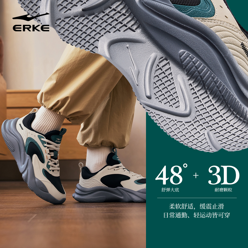 鸿星尔克漫心3秋季新款男鞋运动鞋革面休闲鞋轻便减震软底老爹鞋 - 鸿星尔克outlets店