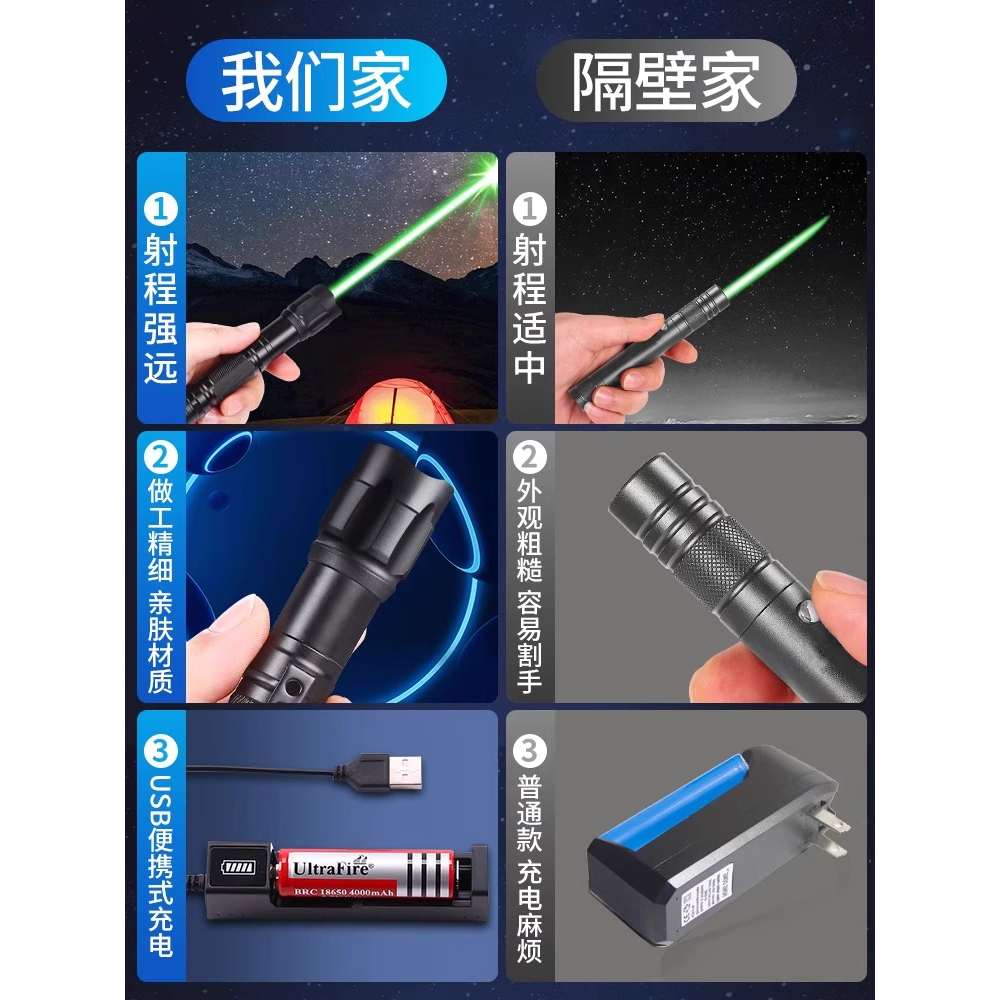 工程激光灯远射强光红外线激光手电教练专用神器指星笔大功率充电激光笔户外粗光束镭射超强绿色玩具射笔射灯 - 启帆旗舰店