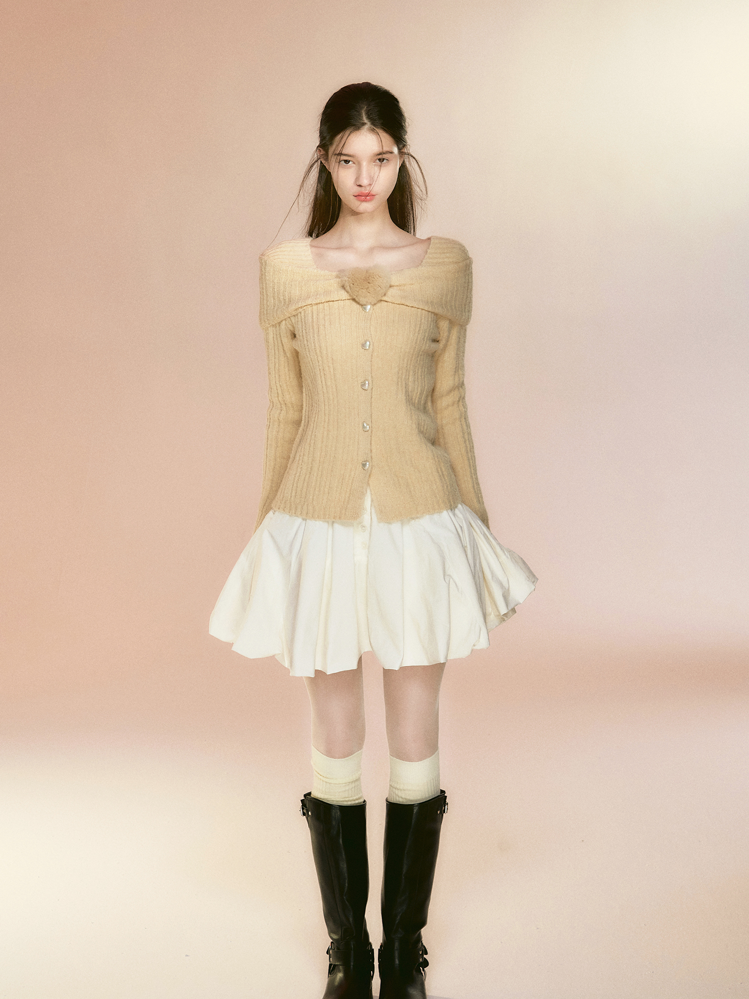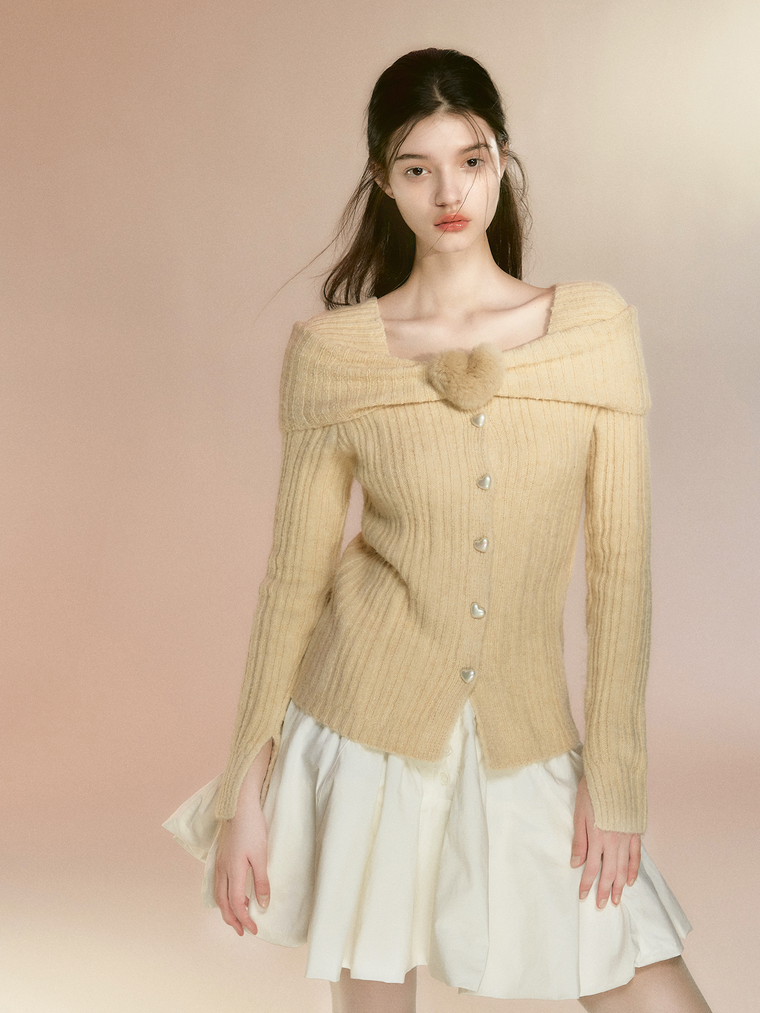 您的位置:他他商城  >   >  RECIT原创设计 立体毛绒爱心针织开衫女秋冬一字肩修身毛衣外套