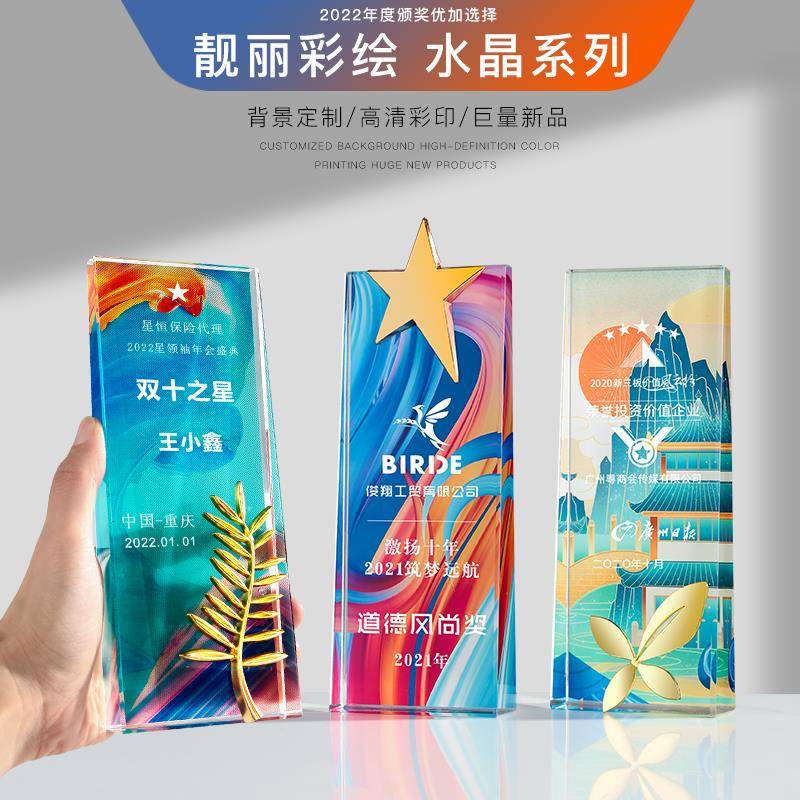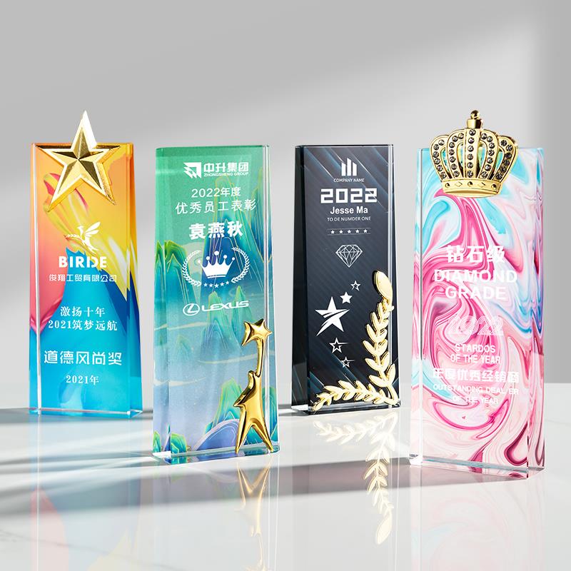 新款水晶彩印奖杯奖牌定制炫彩五角星钻石授权牌优秀员工荣誉颁奖