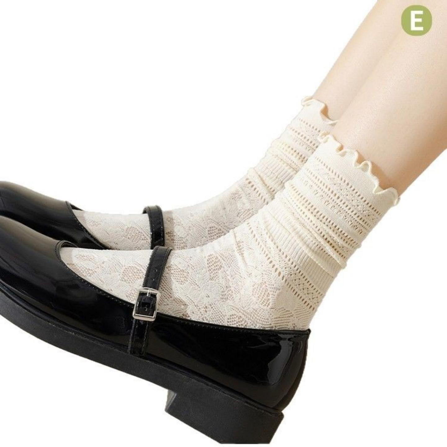 白色堆堆袜子女士夏季薄款蕾丝花边中筒袜配小皮鞋黑色凉感冰冰袜 - 木木袜子店