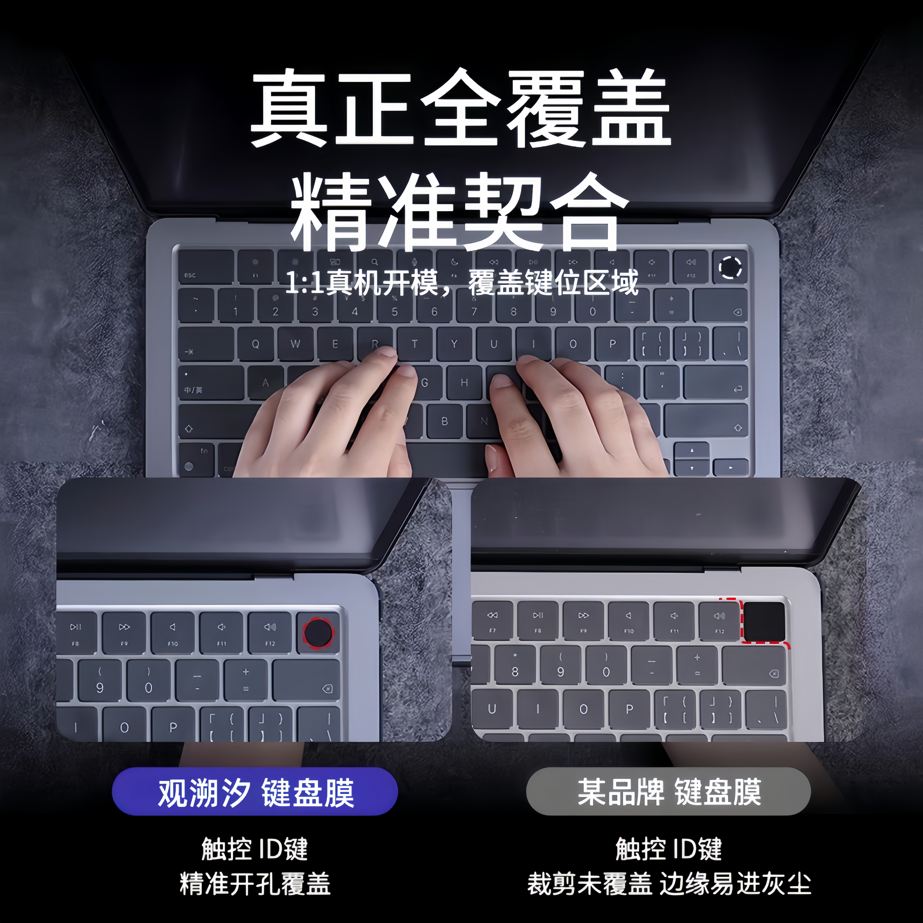 【指纹键O型-新设计】适用Macbook苹果电脑透明键盘膜M1-M5功能键 - GANSUCI观溯汐