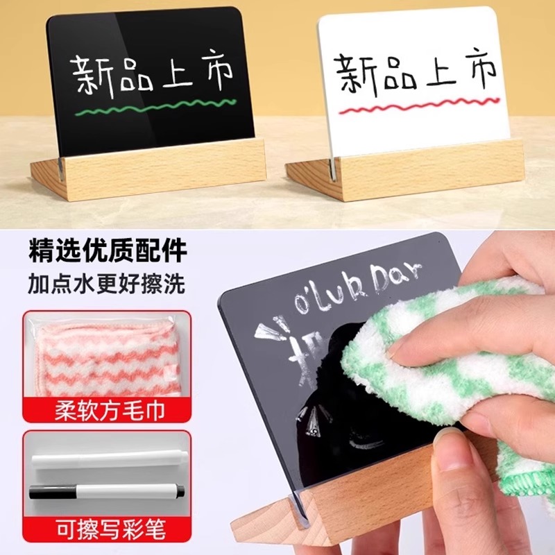 您的位置:他他商城  >   >  亚克力可擦写价格展示牌备忘提示板手写板桌牌台签面包店烘焙店标价签酒店餐厅实木底座菜单价目表标价签架