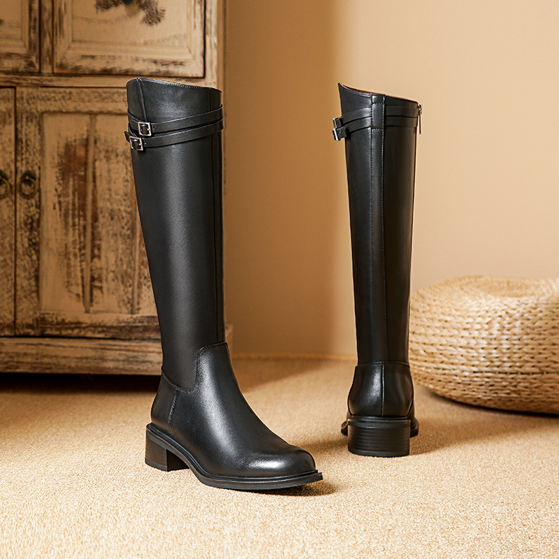 您的位置:他他商城  >   >  星期六英伦风长筒靴女2025秋冬粗跟圆头显瘦高不过膝全牛皮长靴子